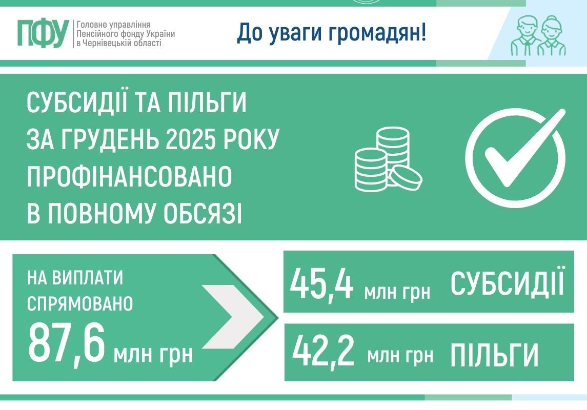 Пенсійний фонд України профінансував субсидії та пільги мешканцям Чернівецької області за грудень 2025 року