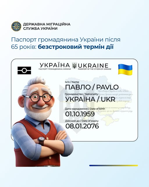 Таким чином, паспорт для осіб, які досягли шістдесяти п’яти років, не потребує обміну кожні 10 років.