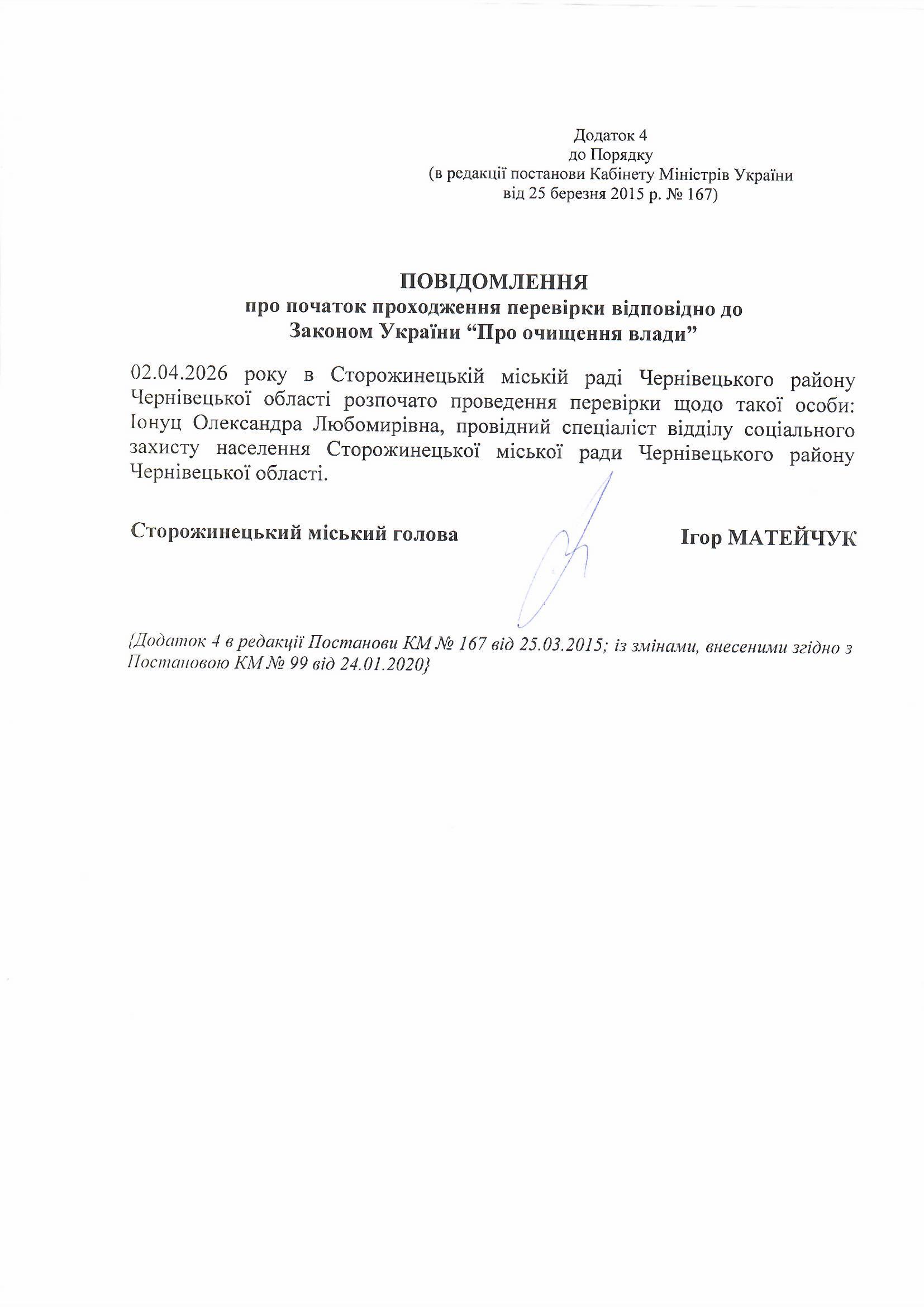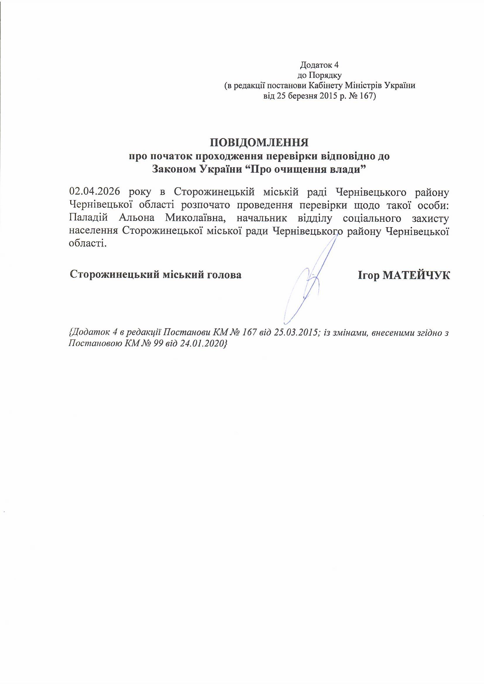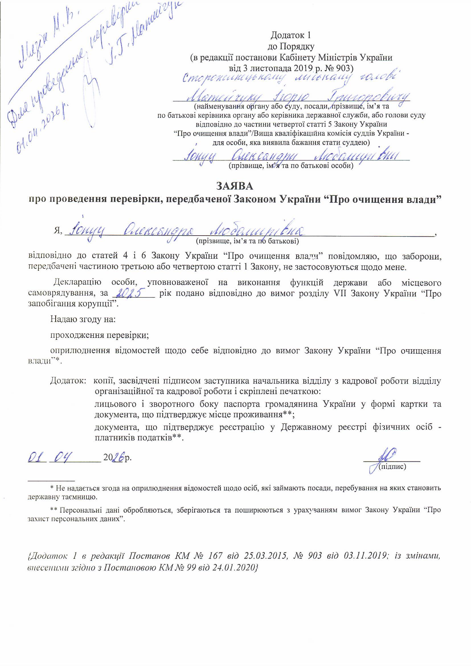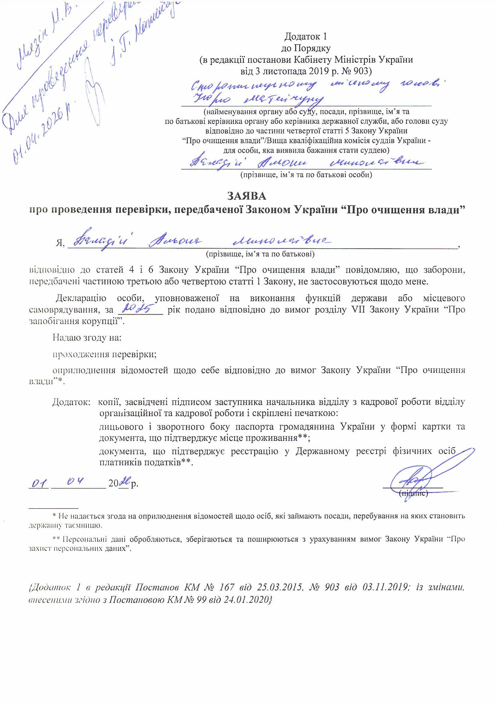 Документи про початок проходження перевірки відповідно до Закону України “Про очищення влади”